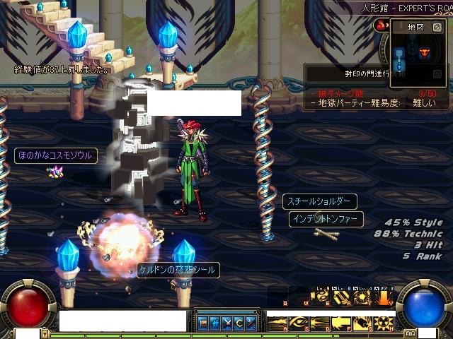 さすがにlv50では人形Eは楽勝。その後、浮遊城E・Kとも行きましたが、少々ダメージを喰らったものの、以前のヘルモンスターに比べれば随分弱いです。これなら後衛職でも随分やりやすくなったと思います。