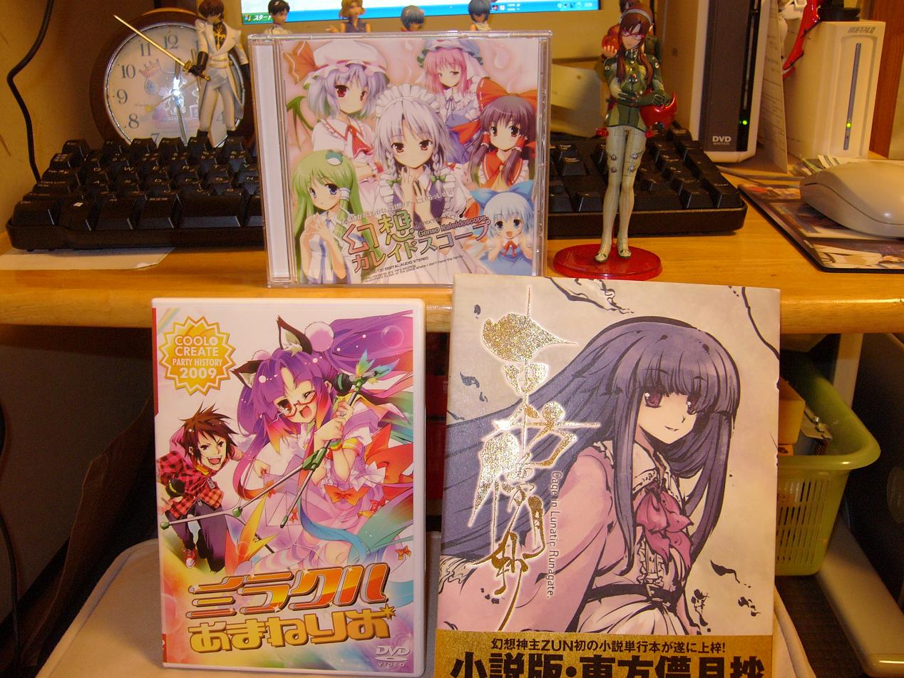 冬コミに行かなかった?行けなかった?ので、委託されたものを購入。値段が高くなるのがちょっと・・・。しかし、欲しいものは大体買ったので良しとしますか。石鹸屋のCDは凄く悩んだ結果、東方儚月抄の小説にしました。だって読書っ子ですから。