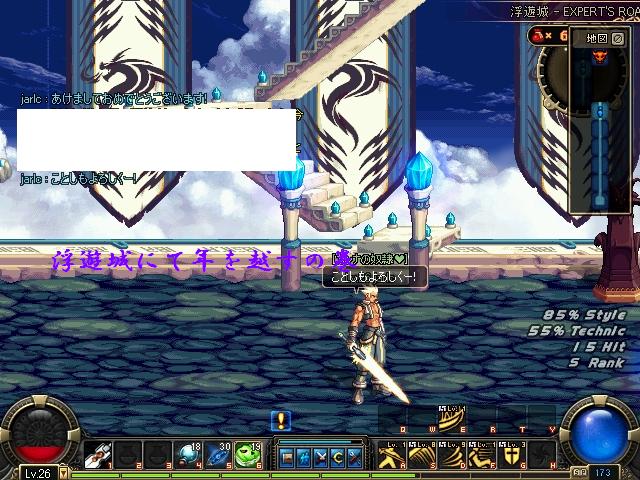 そして計画通り、アラド戦記をしながら年を越す。完p・・・ではなく、実は新年になる数秒前、ハヤテSNSの年越しチャットに出没しそこで年を越しました。もちろんアラド戦記につなげたままで。と、いうことは、SNSのチャットをしながらアラド戦記をやっていたわけになりますw ある意味卑怯ですw 年を越したのがダンジョン中だったのもあり、誰もアラド戦記では祝ってくれませんでしたとさ。メガホンでは色々と叫んでいたようでしたが。