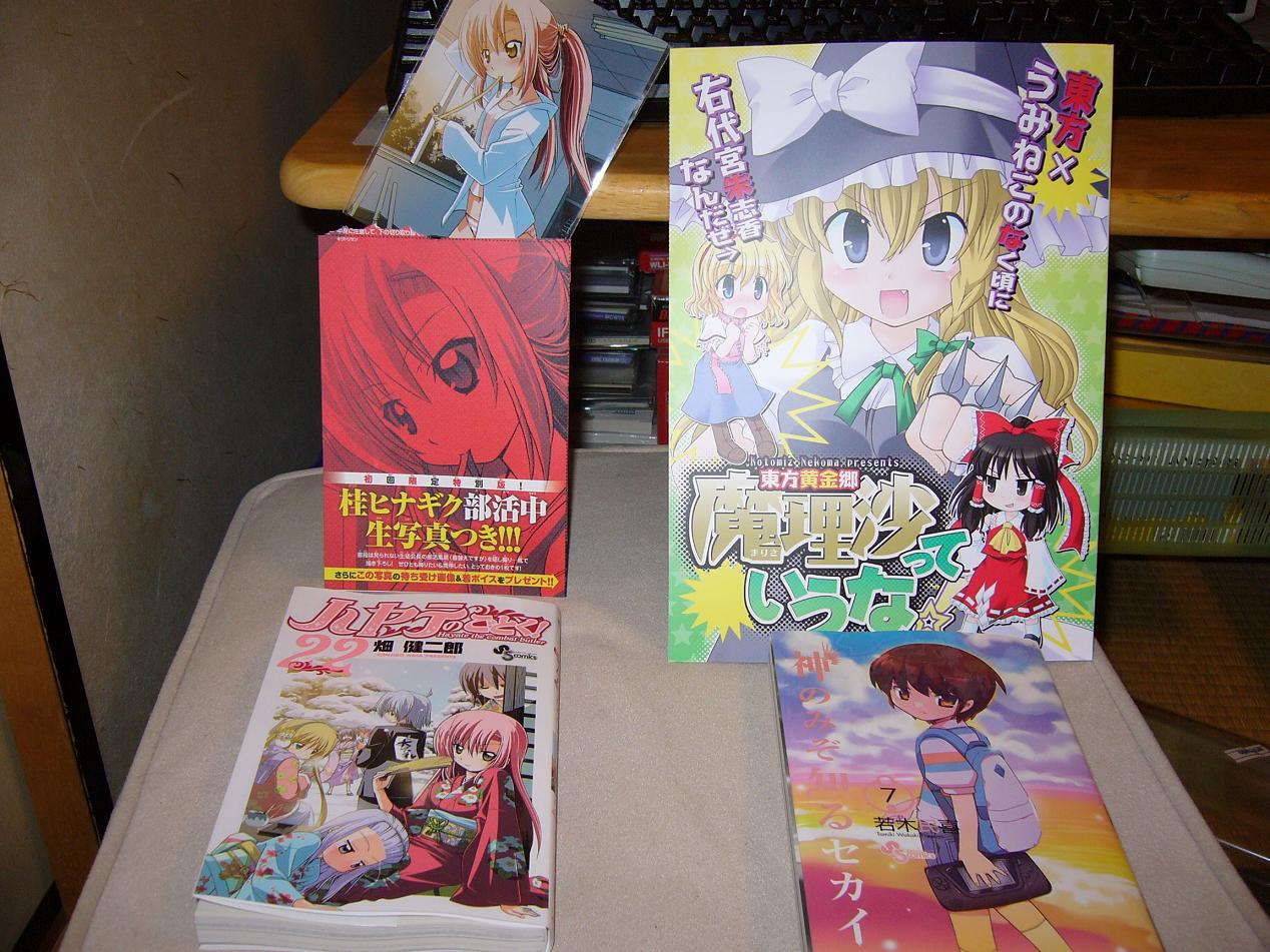 ともかくトップ記事に書いてあるような更新に戻ります。ゆっくりしていきますが、何か買ったものがあったら更新します。確かハヤテのごとく!と神のみぞ知るセカイの新刊が今月だったはずなのでそれでも。