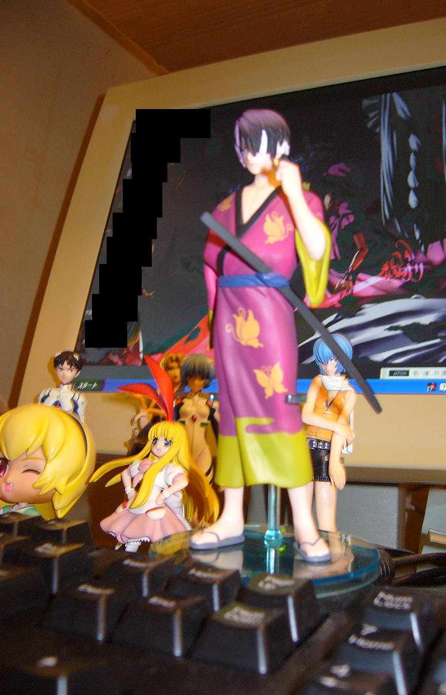 ある程度写真で分かるとおり、画面前のフィギュアが多くなってきた。ギリギリ置けるかな?くらいです。しかもPC台の一番上にもフィギュアケースがあったりして。ついでに本棚もやばかったりする。
