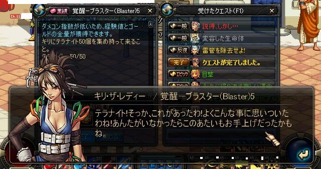 ・あまり前にどんなことを書いたか覚えてないので説明しますと、黒キューブのかけらとお金がないと嘆き、色んな所に行ってお金を奪ってきて?、友達である人に黒キューブのかけらとお金と混沌魔石かけらを交換してもらい、作りに行くぜー!と思ったら、これまたお金が無くなり、仕方なく他のキャラから郵便で150k送って、なんとか材料クエが終了。